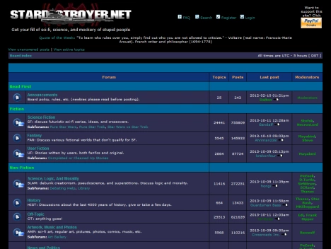 http://bbs.stardestroyer.net/ added to FindAForum 10 October 2013 (Forum #112). Entry last modified 27 August 2025.