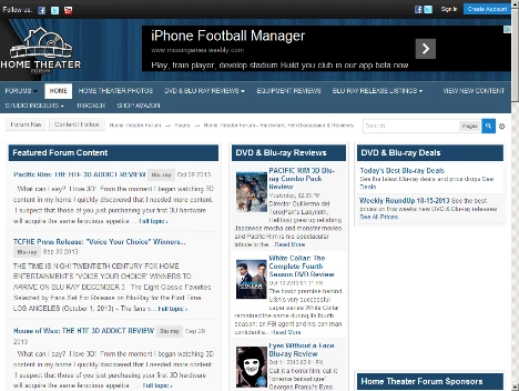 Home Theater Forum is a site dedicated to the love of all things cinema and film, home theater equipment and all varieties of home entertainment.